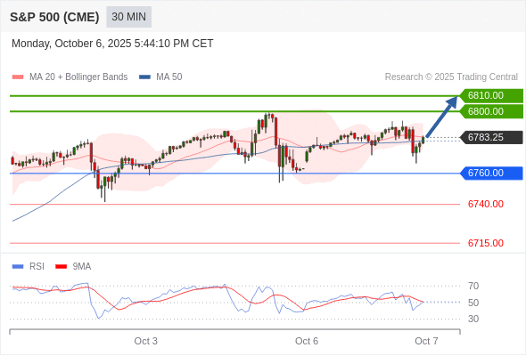 在 6760.00 之上,看涨,目标价位为 6800.00 ,然后为 6810.00 。