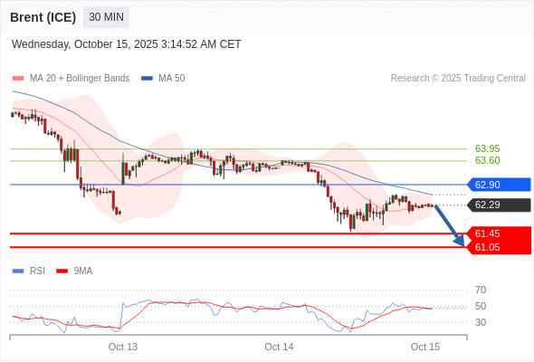 在 62.90 之下,看跌,目标价位为 61.45 ,然后为 61.05 。