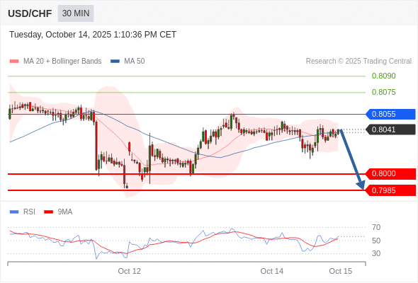在 0.8055 之下,看跌,目标价位为 0.8000 ,然后为 0.7985 。
