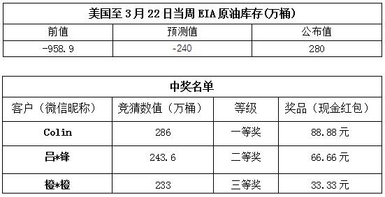 2019年3月第4期“EIA大竞猜活动的中奖结果已出,获奖信息如下: