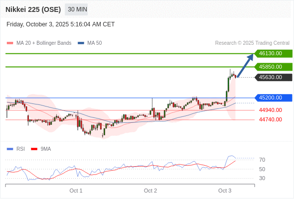 在 45200.00 之上,看涨,目标价位为 45850.00 ,然后为 46130.00 。