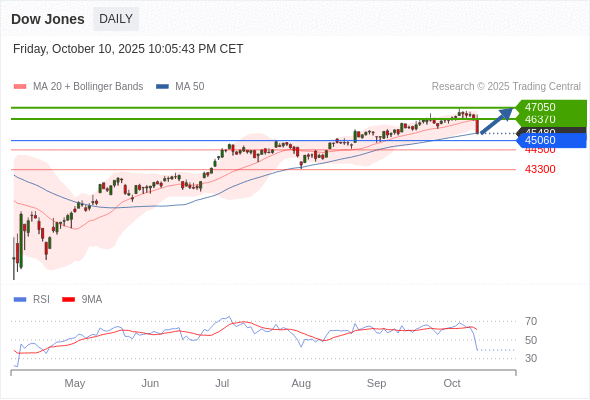 在 45060 之上,看涨,目标价位为 46370 ,然后为 47050 。